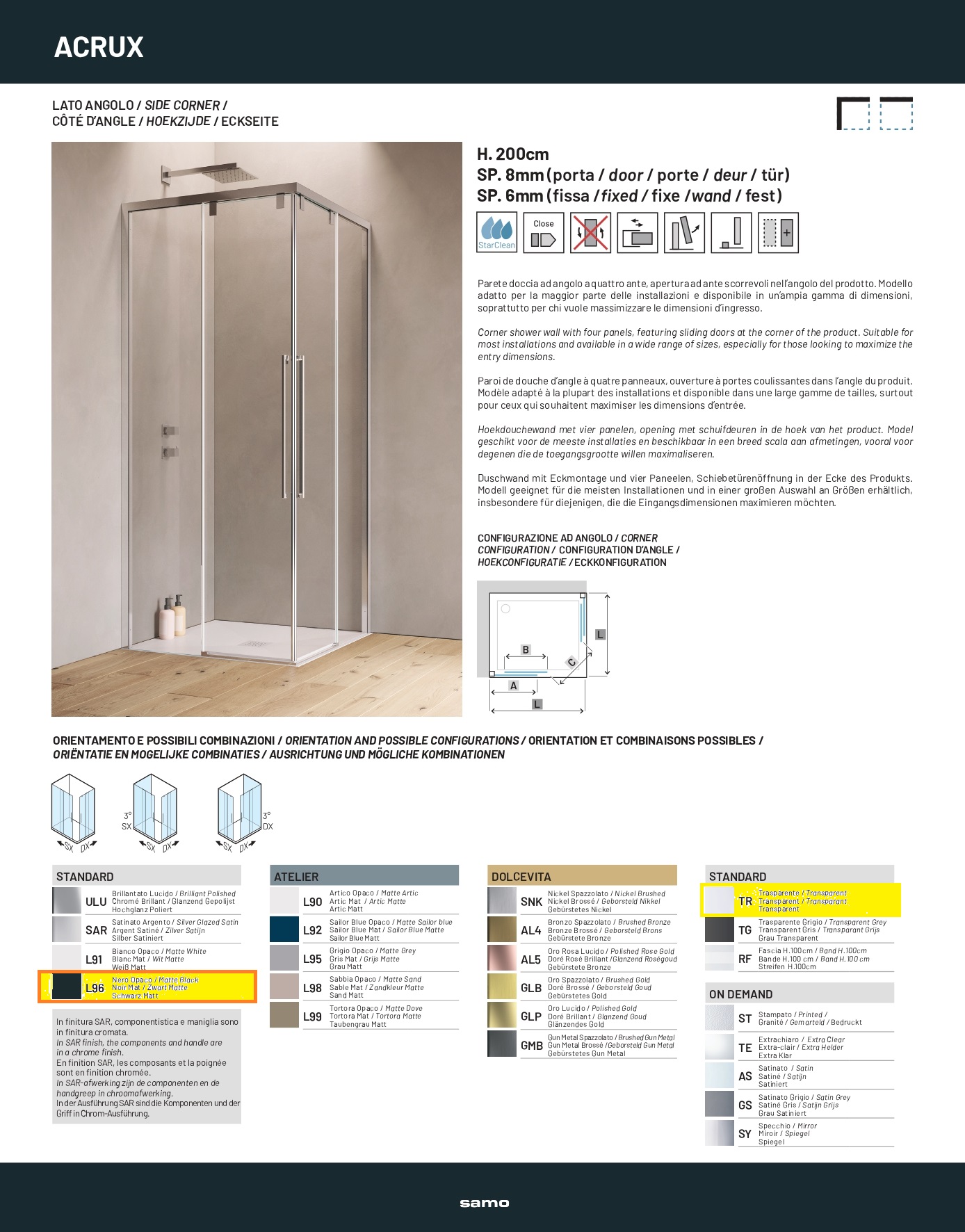 Box doccia angolare 100DX x 80SX (NON REVERSIBILE)