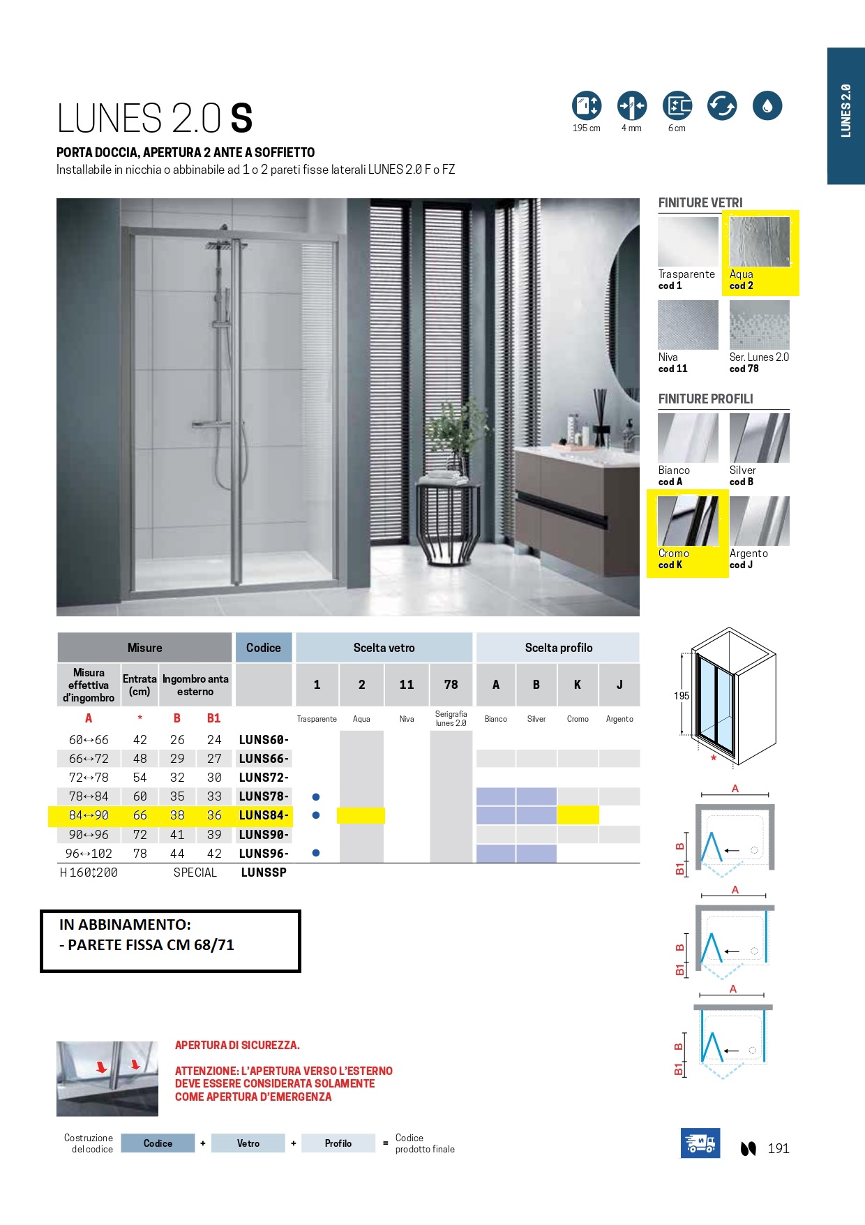 Colore cromo, vetro trasparente 6mm